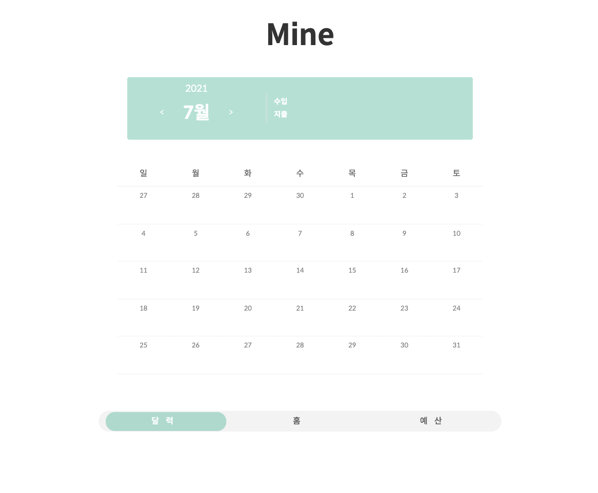 🐜 Mine 애플리케이션 프로젝트 - 하단 탭 (0) 2021.07.29 🐜 Mine 애플리케이션 프로젝트 - 상단 탭 (0) 2021.07.26 🐜 Mine 애플리케이션 프로젝트 - 홈 화면 (0) 2021.07.26 🐜 Mine 애플리케이션 프로젝트 두 번째 이야기 (0) 2021.07.26 🐜 Mine 애플리케이션 프로젝트 (0) 2021.07.13 - 홈 화면