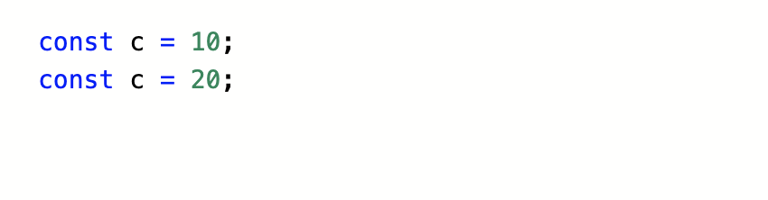 const도 마찬가지로 변수 중복 선언 불가능!! 아래와 같이 Error 발생