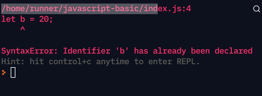 let은 변수 중복 선언 불가능!! 아래와 같이 Error 발생