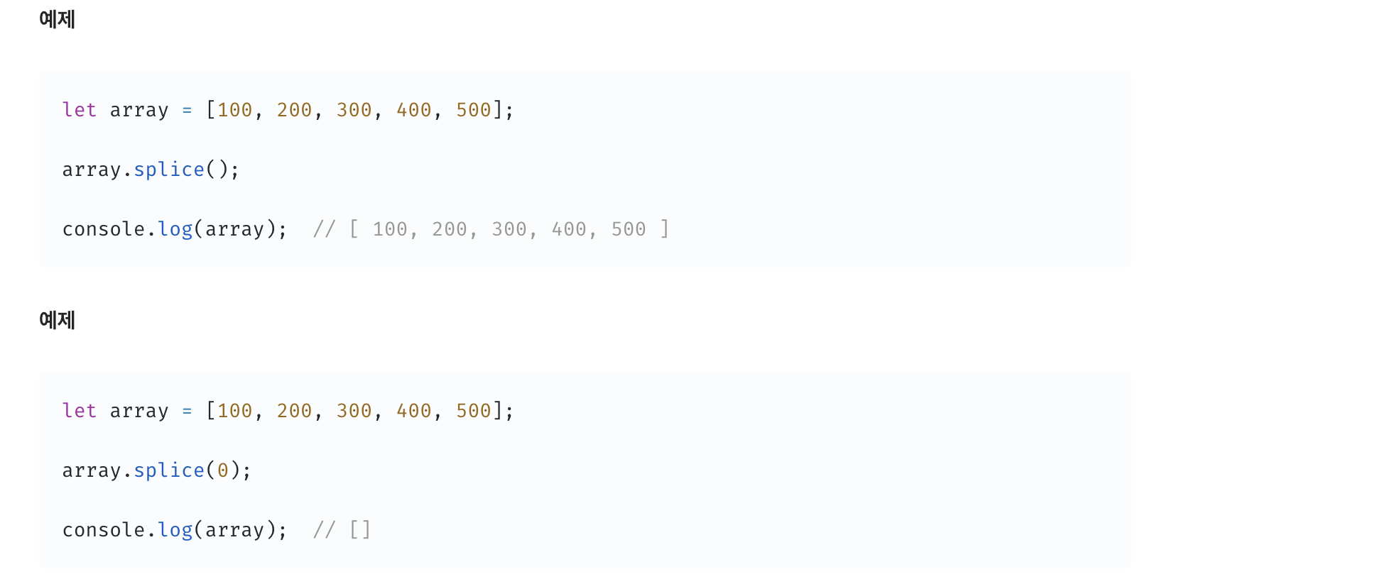 ☑️ deleteCount (배열에서 제거할 요소의 수 / 옵션 요소)