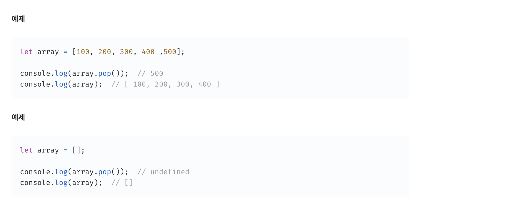 배열에서 마지막 요소를 제거하고 그 요소를 반환한다.