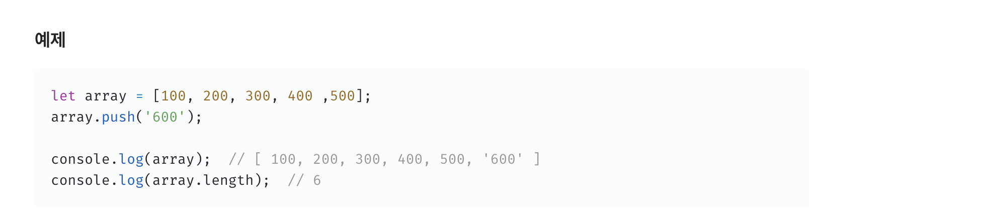 배열의 끝에 하나 이상의 요소를 추가하고, 배열의 새로운 길이를 반환한다.